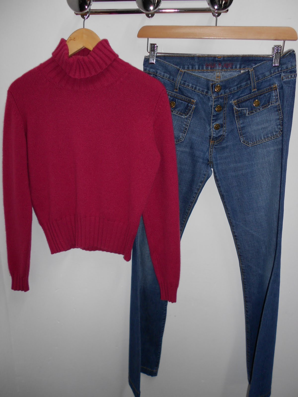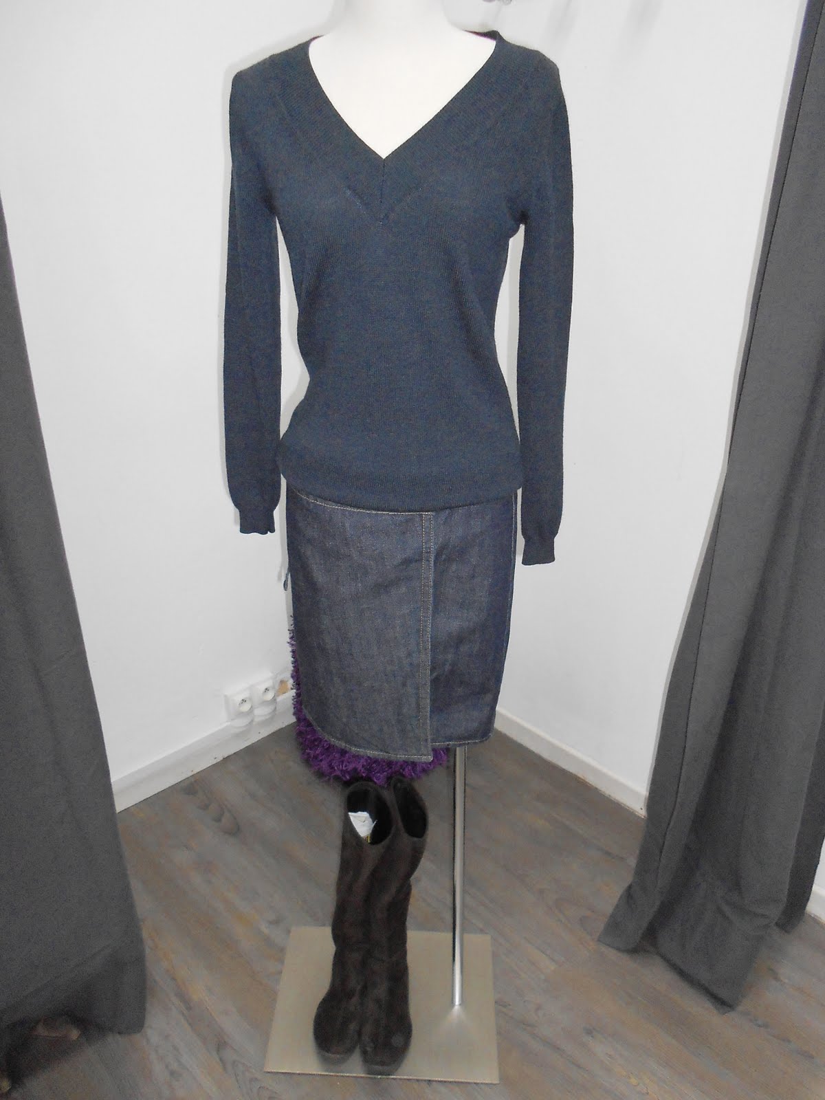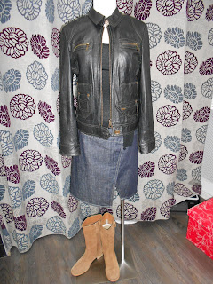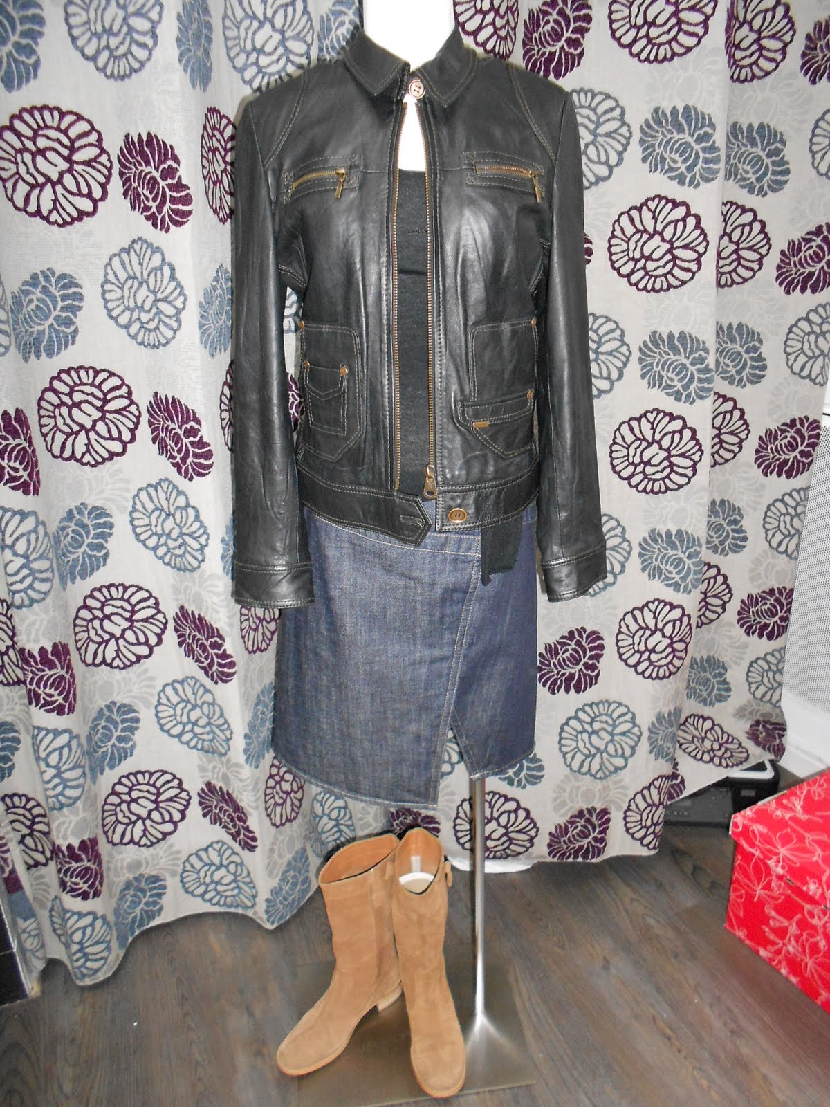 - Ensemble MFG : Gilet noir : 70 euros( taille 38) et Pantacourt jean - 60 euros( taille 36)