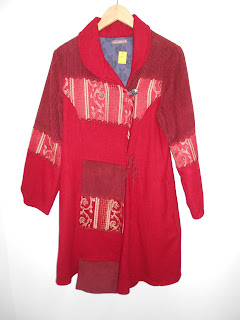 -Patchwork de velours, le manteau Pepsi et bonne humeur assurée - manteau nid d'abeille -70 euros( taille 1)