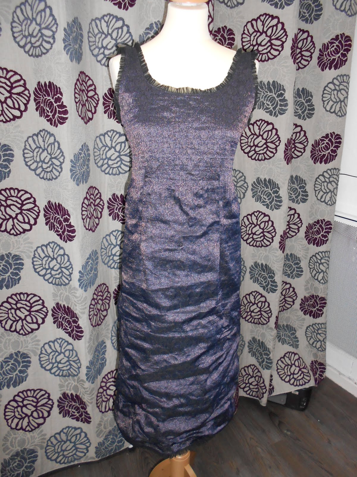 -robe longue Cotelac couleur violette, incrustes dorées et tissu froissable- prix 70 euros( taille 3)